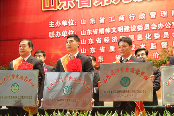 此次活動經(jīng)過消費者滿意度調(diào)查、各市初評、材料審查、省考評組考評、征求主管部門意見、省評審委員會審定、社會公示等流程,由省消協(xié)、省文明辦、省工商局、省質(zhì)監(jiān)局、省衛(wèi)生廳、省物價局、省總工會等13個部門共同認(rèn)可肯定。該項榮譽的獲得標(biāo)志著我公司的商品質(zhì)量及服務(wù)水平不僅得到了濟寧地區(qū)廣大消費者的高度認(rèn)可,在省、乃至全國也具有了一定的知名度。山東省副省長張建國同志也指出,消費者滿意單位是塊“金字招牌”,是政府、社會和廣大消費者對誠實守信、依法經(jīng)營者的褒獎與認(rèn)可。