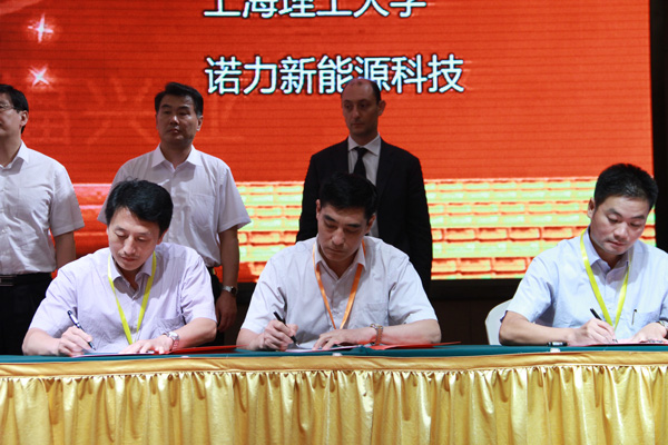 經(jīng)典集團(tuán)董事長苗樹文(中間)上海理工大學(xué)食品與醫(yī)療器械學(xué)院院長劉寶林(左一)共同出席首輪簽約儀式