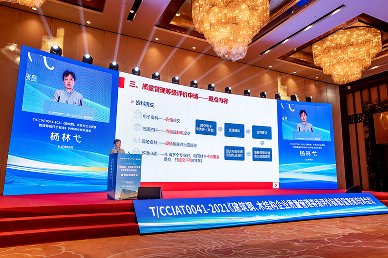 《建筑鋼、木結構企業(yè)質(zhì)量管理等級評價標準》起草人、高級認證審核員楊杏弟對標準的起草背景、意義、實施等進行了介紹。